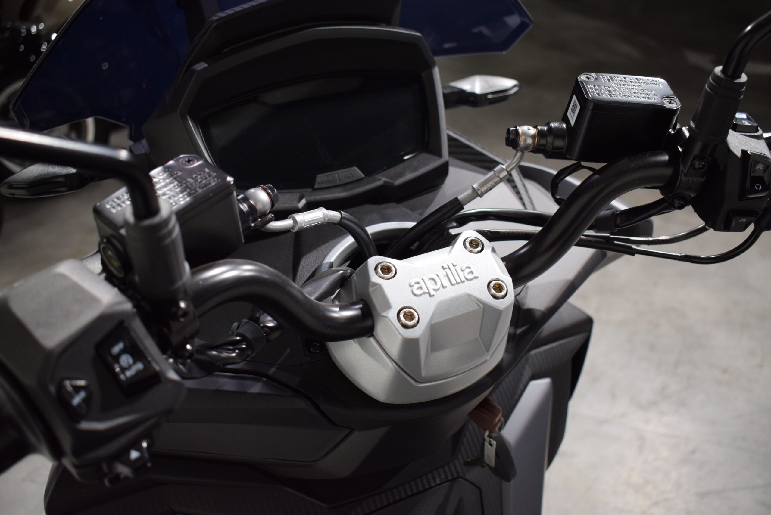 De stijl van de SR GT nodigt uit tot actie en plezier, maar hij is ook perfect geschikt voor het drukke stadsverkeer en heeft een helmbak van 25 liter waar een complete jethelm in past. In het beenschild vinden we een handige USB-aansluiting en er is ook een geavanceerd LCD-dashboard. Met de optionele extra Aprilia MIA verbindt u uw telefoon via bluetooth met de bedieningselementen op het stuur.