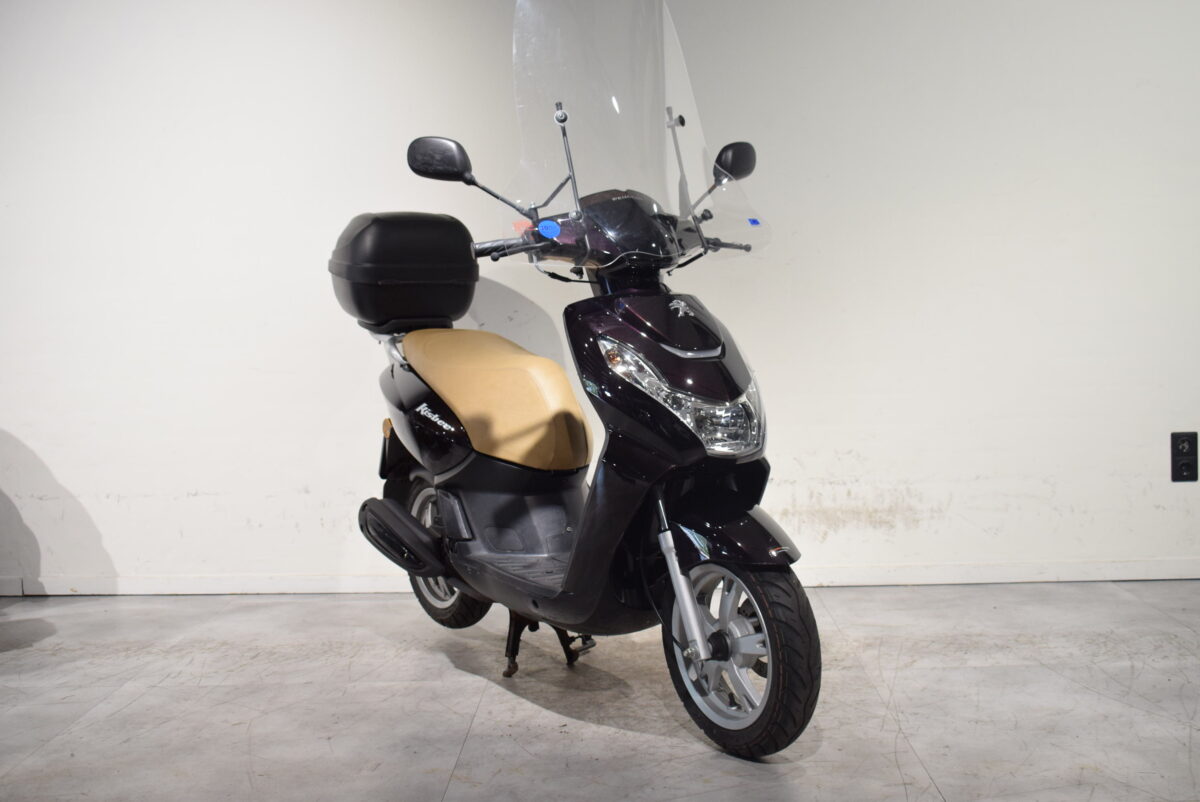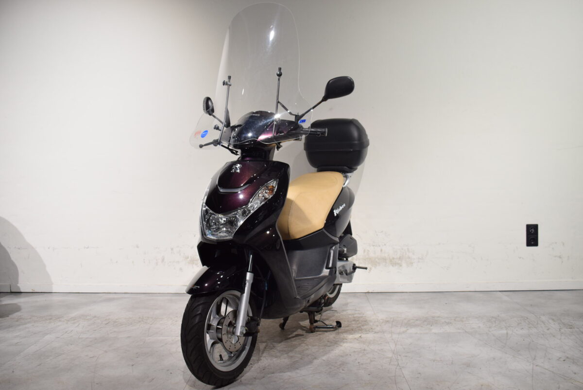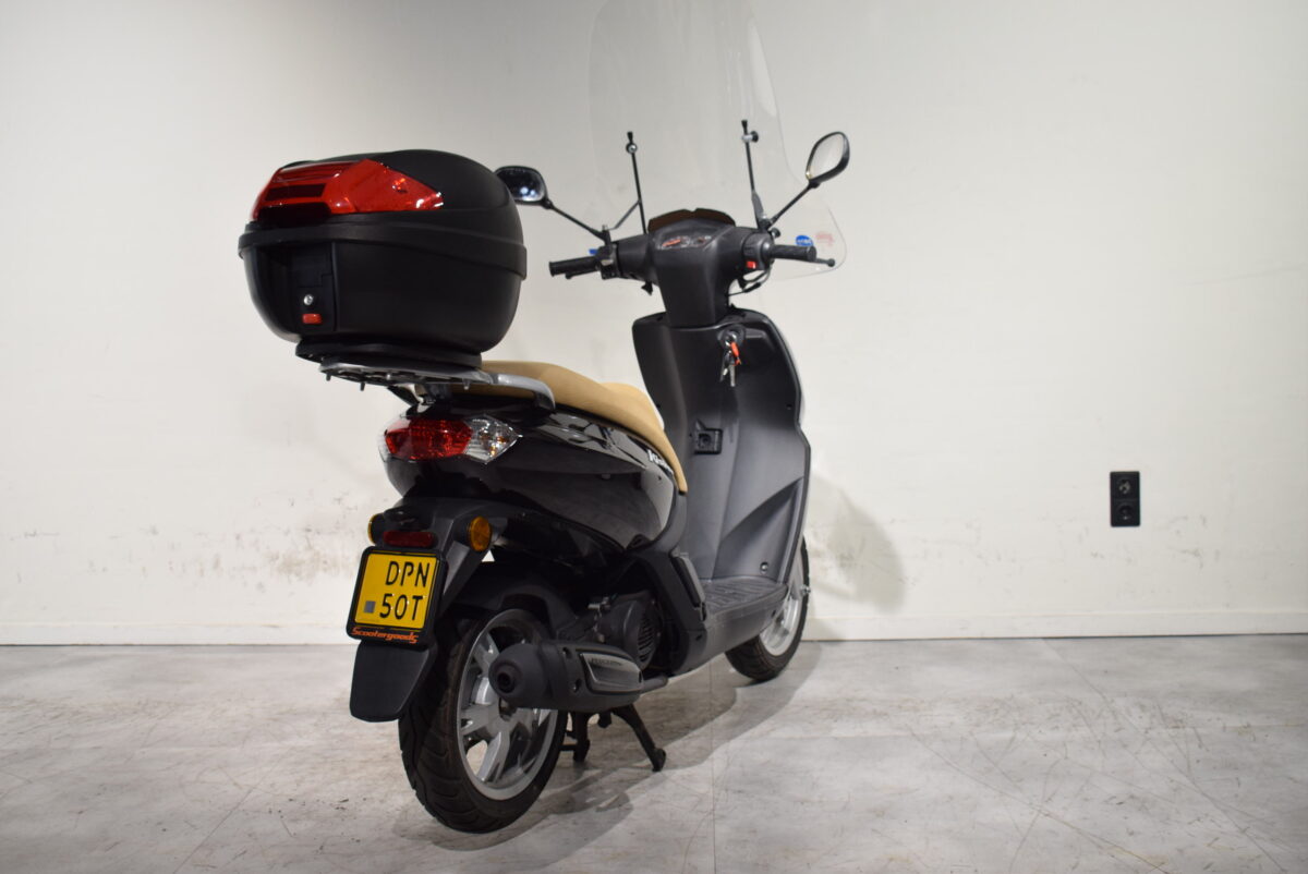 Deze Peugeot scooter is voorzien van een topkofferdrager met topkoffer voor extra bergruimte. Indien gewenst is deze eenvoudig afneembaar. Daarnaast is er een hoog windscherm geplaatst zodat je fijn uit de wind zit, geen last hebt van vliegjes in je gezicht en bij regen mooi droog achter het windscherm kunt gaan zitten.