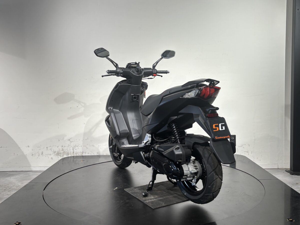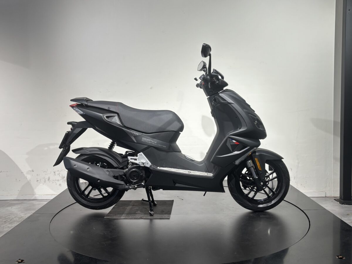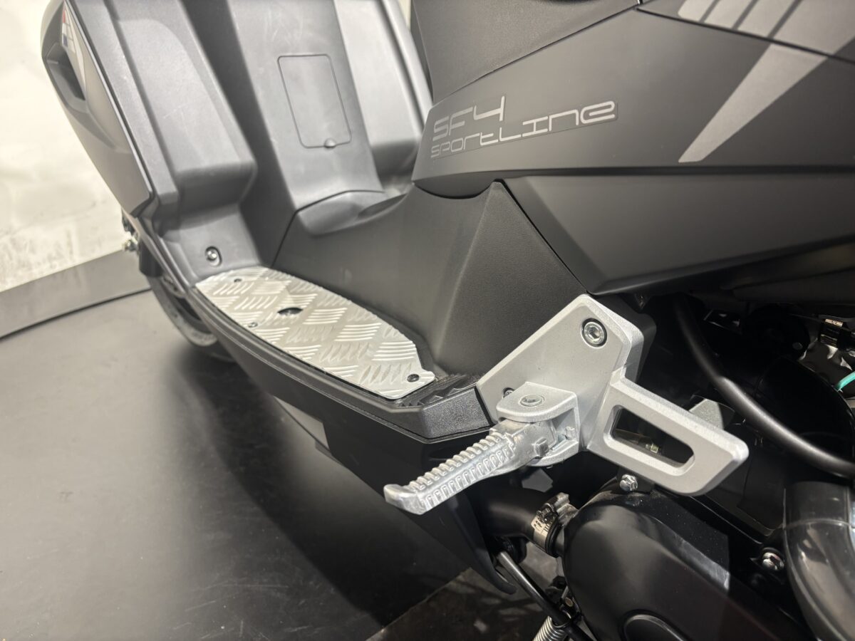 Het betreft het Sportline model, dit betekend dat de scooter is voorzien van aluminium treeplaten, upside-down voorvork en LED grill-verlichting.