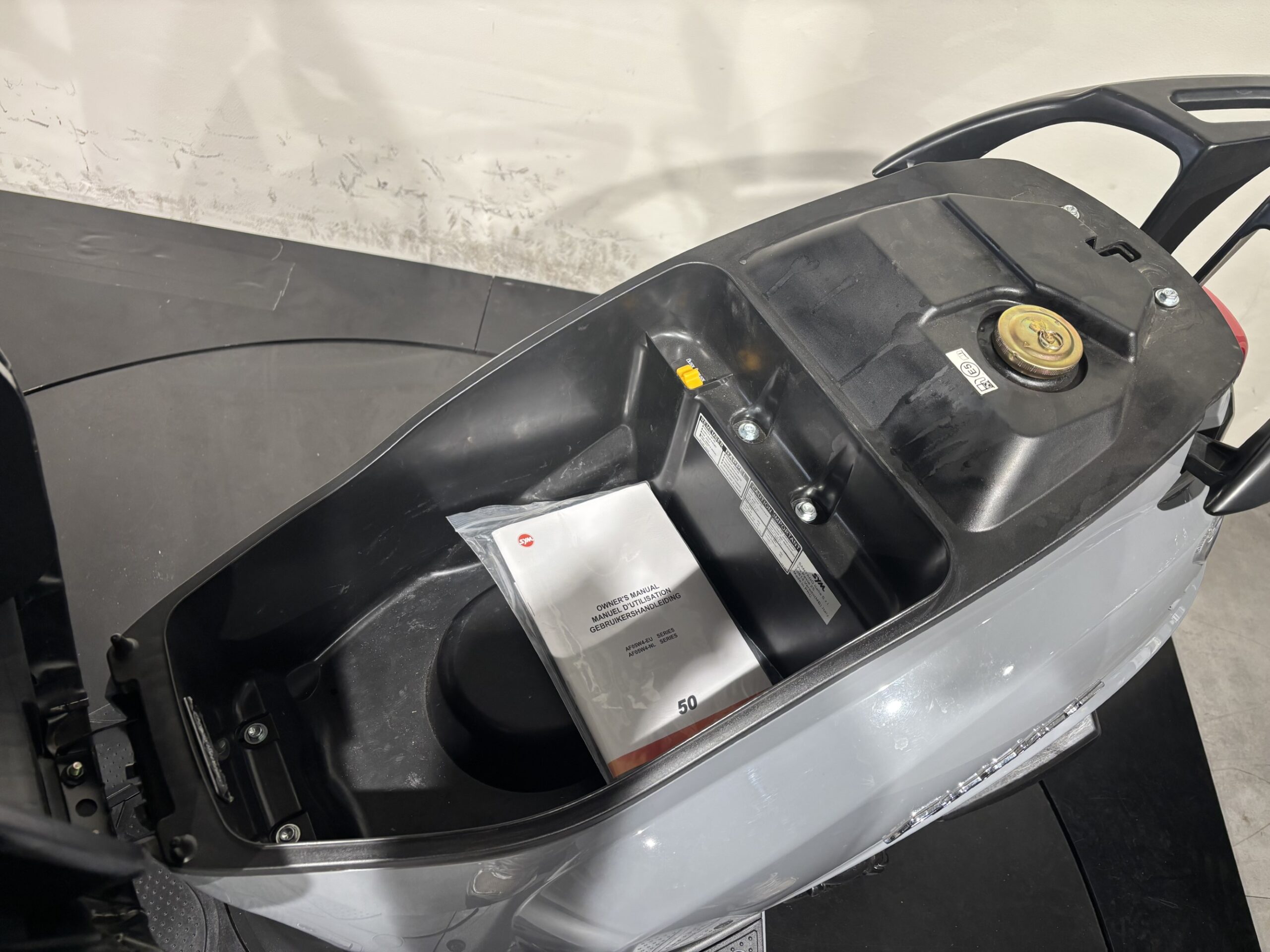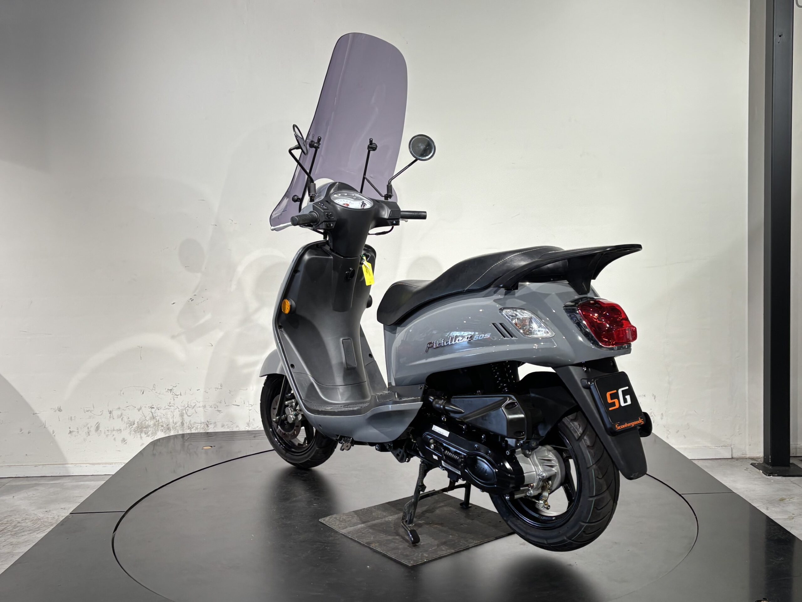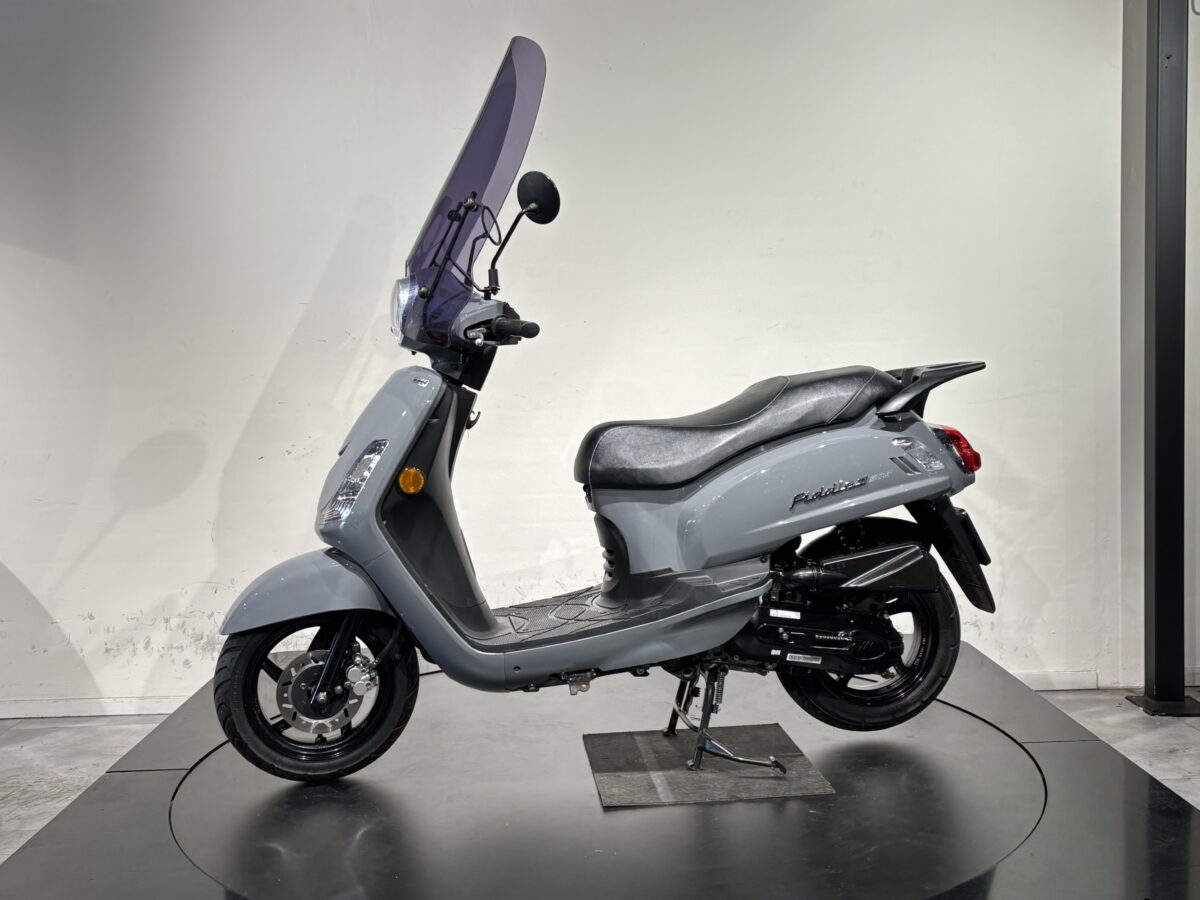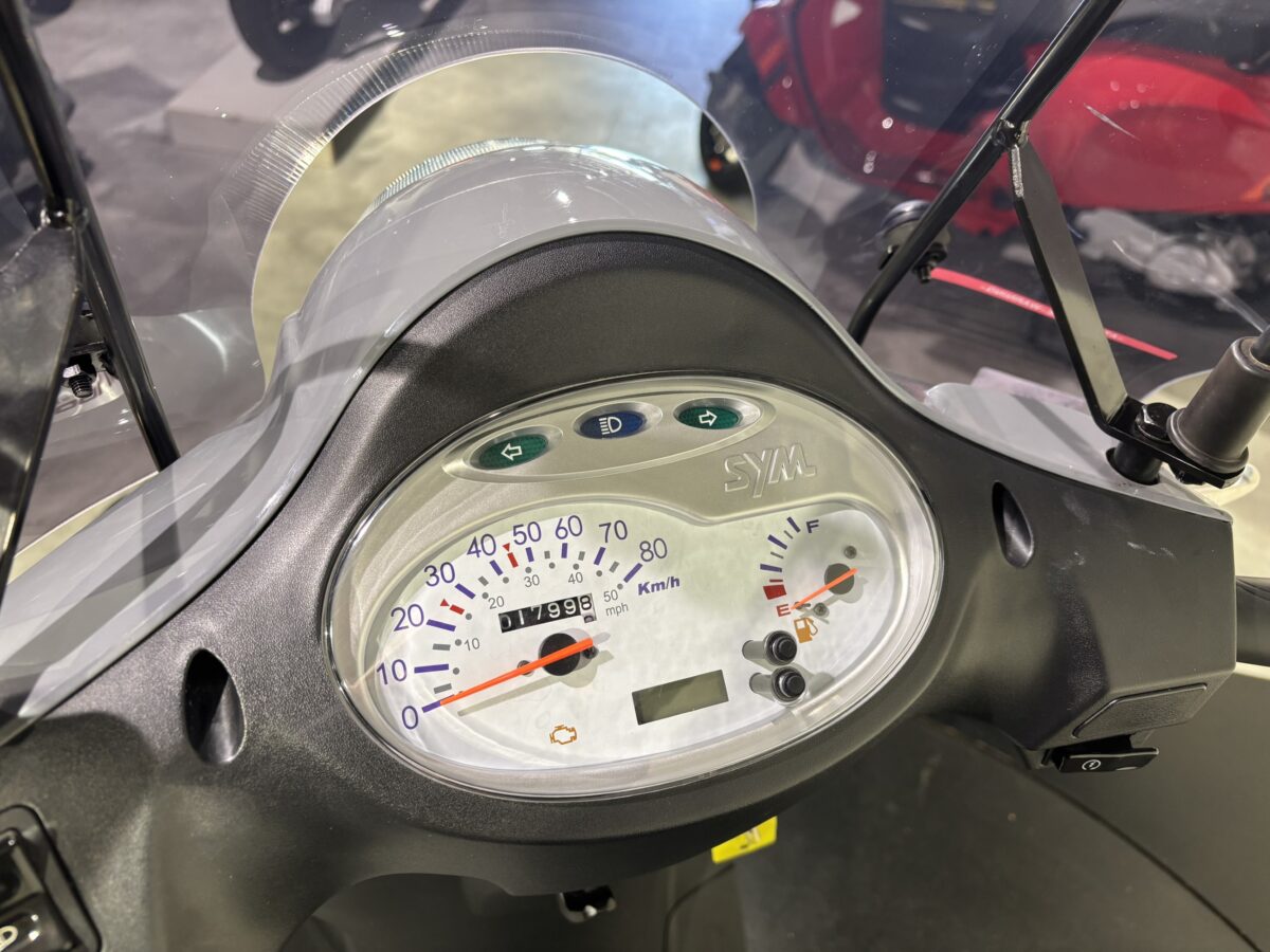 Deze SYM is voorzien van een hoog smoke windscherm.