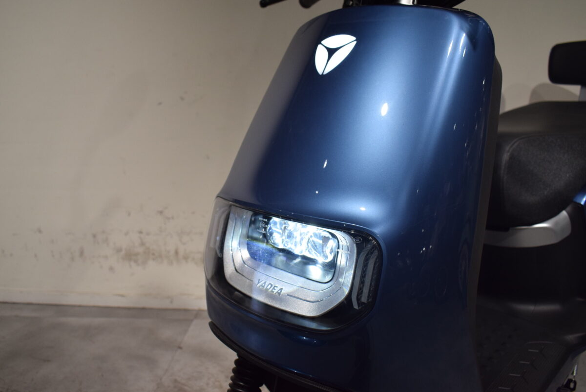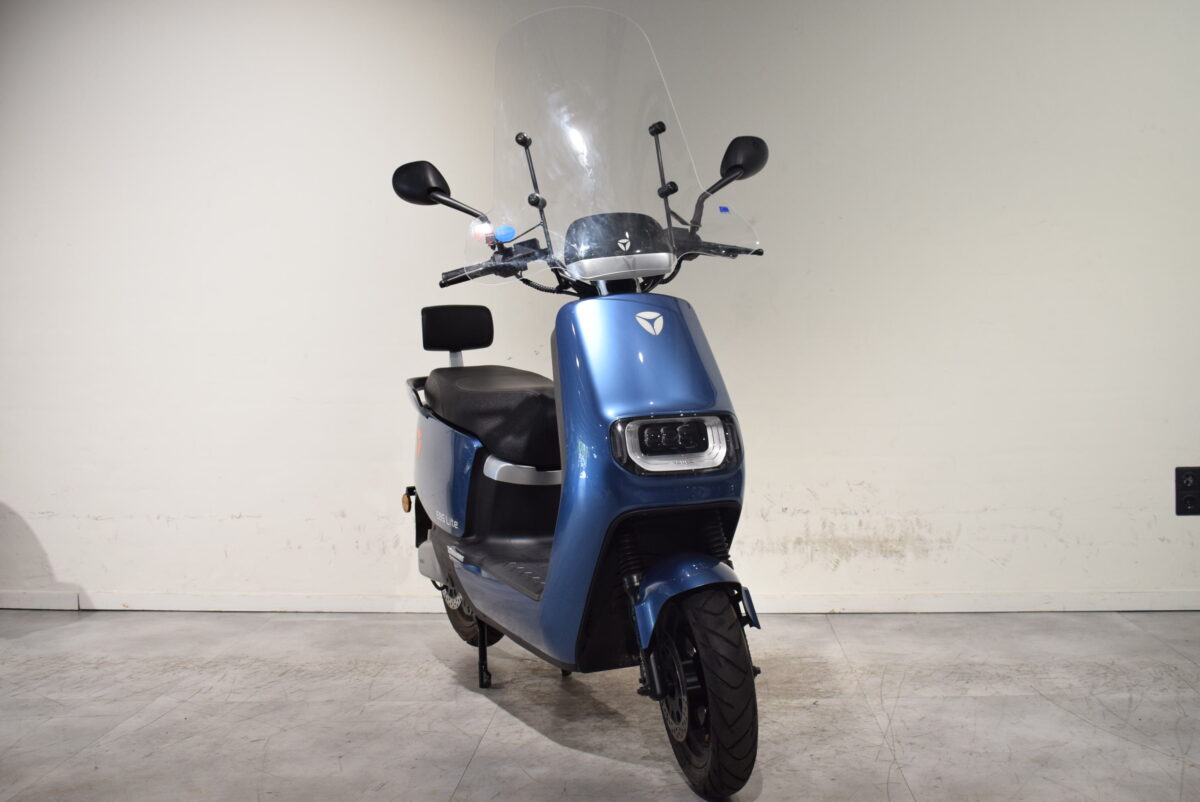 Zeer jonge Yadea E8S Lite elektrische snorscooter uit 2025 met een fijne lage kilometerstand van slechts 1800 kilometer.Deze blauwe Yadea e-scooter scooter is voorzien van een hoog windscherm. Zodat je bij droog weer geen last hebt van vliegjes en wind. Bij regen zit je droog achter het scherm.